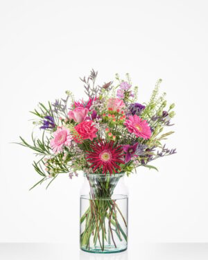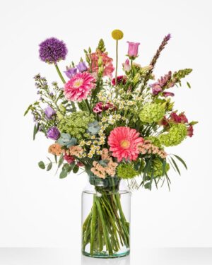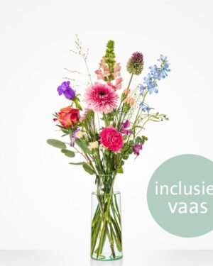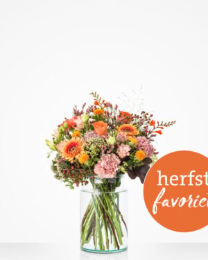 van dit boeket wordt echt iedereen vrolijk. De warme tinten van deze bloemen sluiten prachtig op elkaar aan en zorgen ervoor dat dit boeket bij iedereen een lach op het gezicht tovert. Wie verras jij? (excl. vaas)