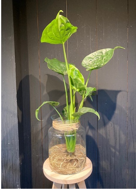 Alocasia op water in een vaas. Totale hoogte 65cm