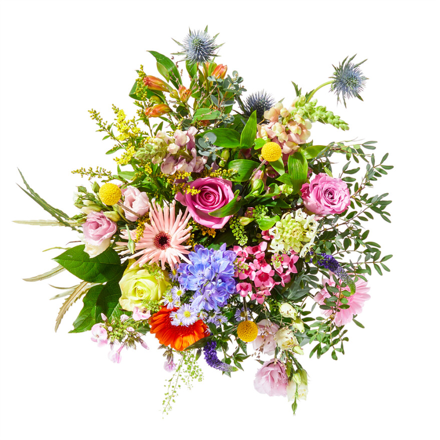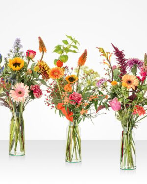 Een enorm kleurrijke verrassing! Dat maakt dat dit boeket erg populair is. De vrolijke kleurencombinatie maakt dit boeket tot een echte bloemenweelde. Geschikt voor vrolijke gelegenheden of als je iemand een hart onder de riem wilt steken. (excl. vaas)